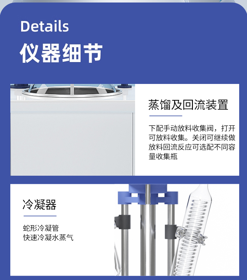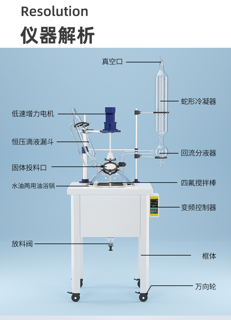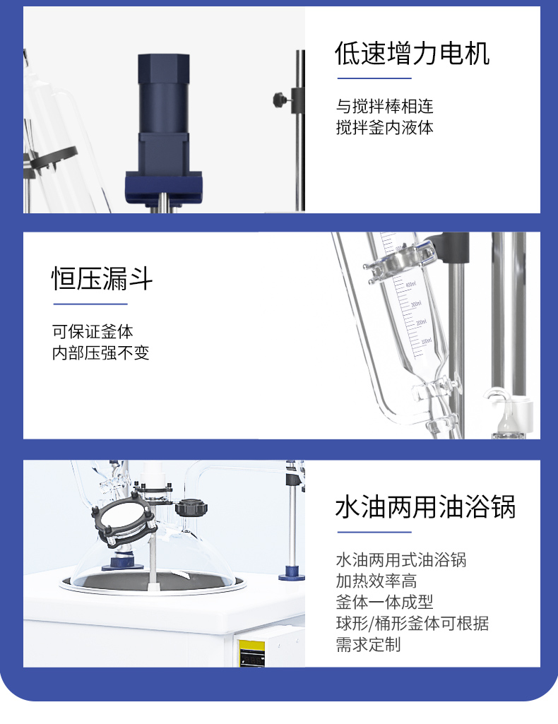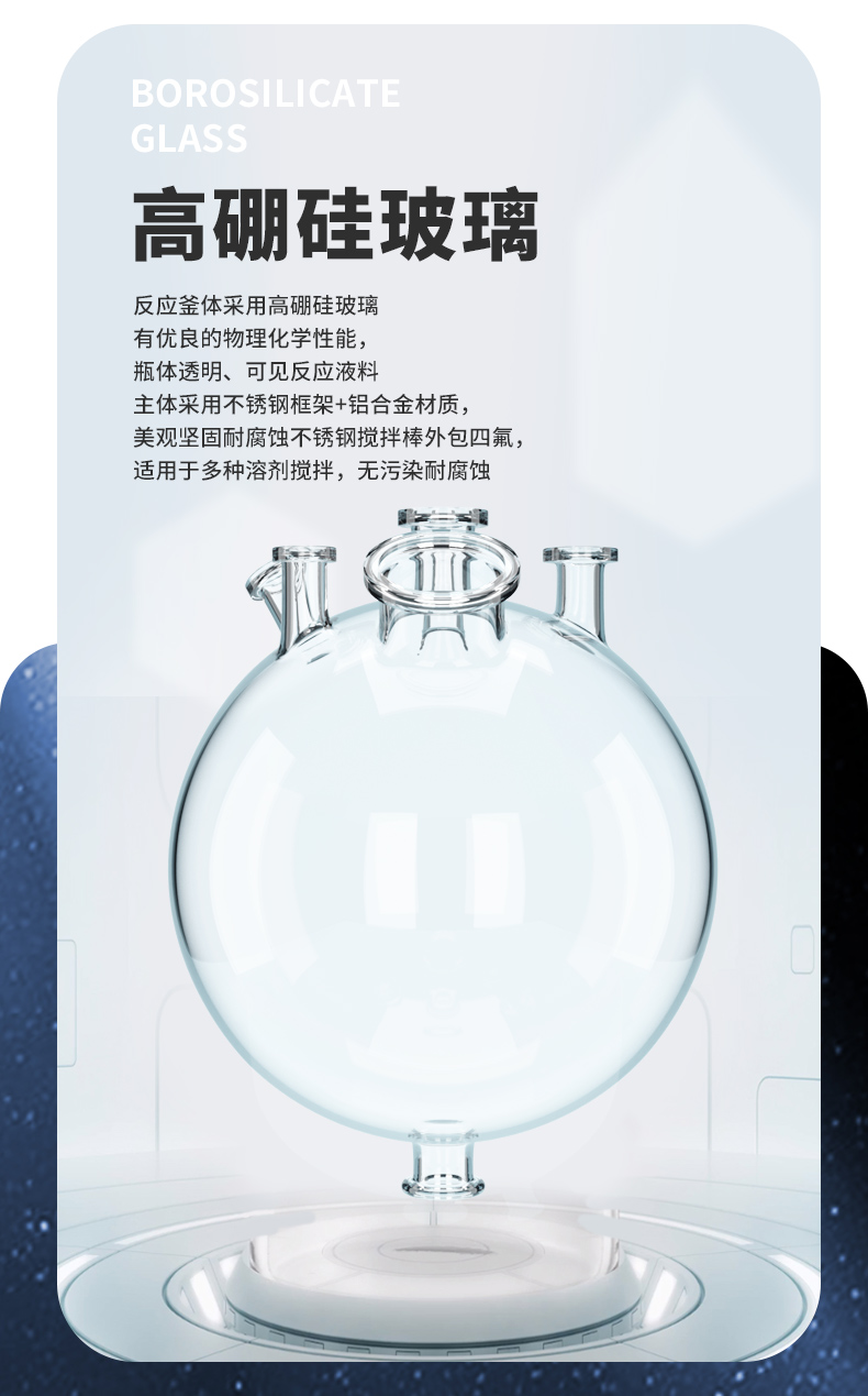 玻璃反應釜主體結構采用不銹鋼,鋁合金,高效穩定,美觀大方,經久耐用,玻璃反應釜是一種多功能反應器,可以在恒溫條件下進行各種生化合成反應,也可以在不同溫度下做回流或蒸餾。