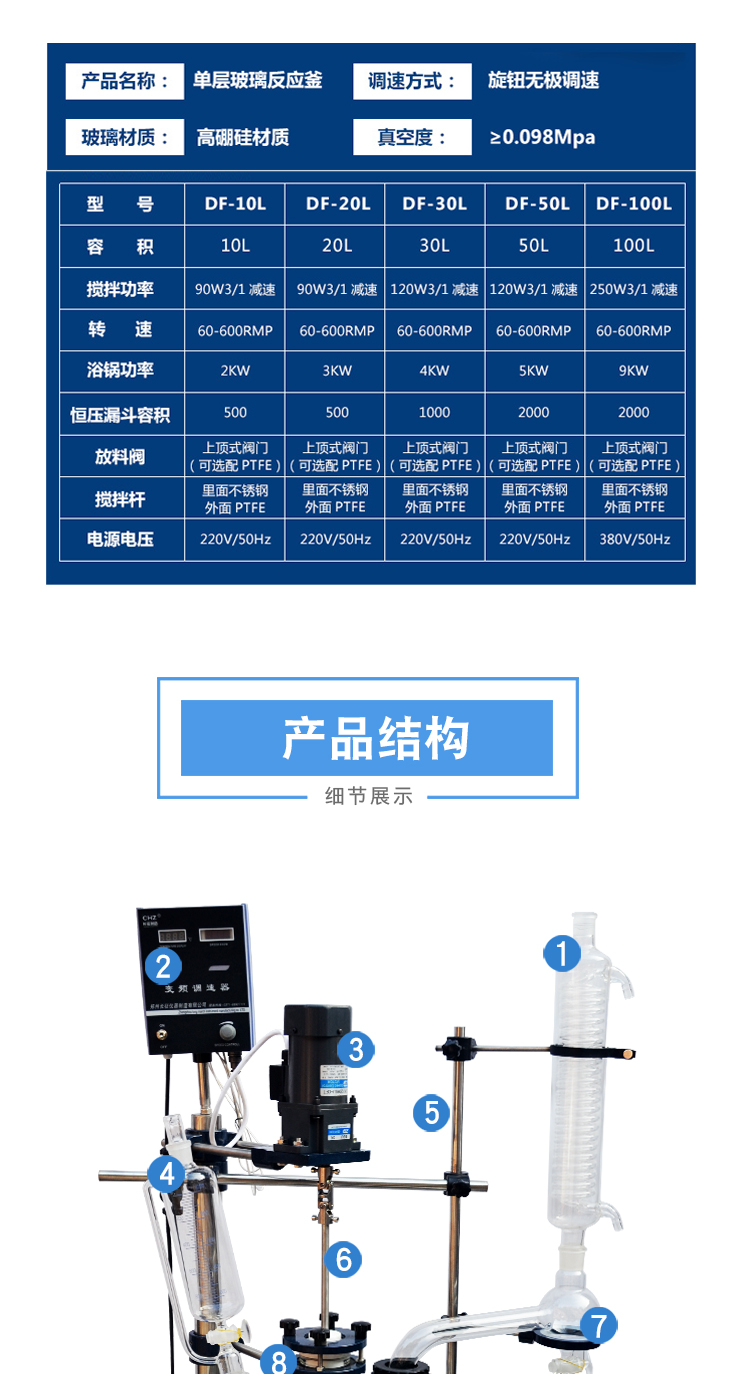 防爆型單層玻璃反應(yīng)釜(50-100L)