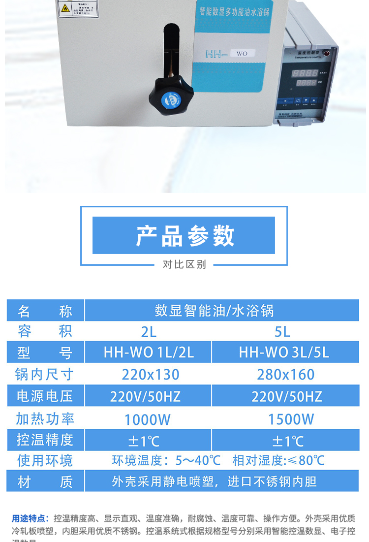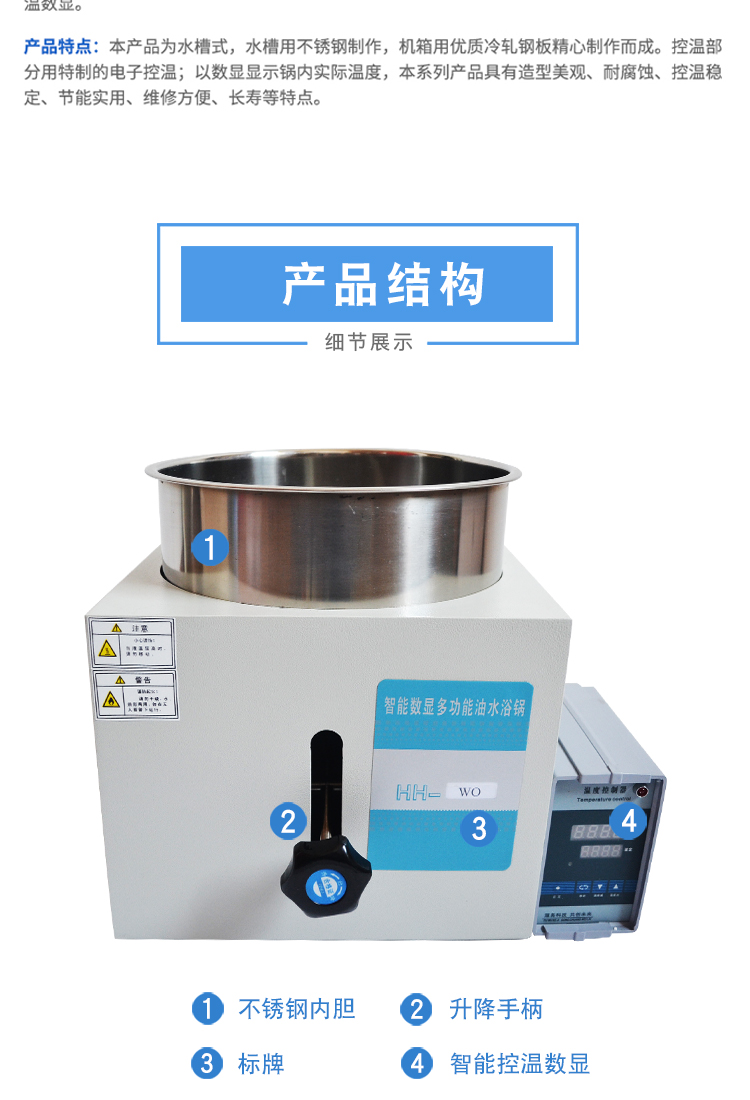 數顯油浴鍋是一種通過加熱油介質來為實驗提供均勻、穩定熱源的實驗室常用恒溫加熱設備。它通過內置的加熱管對鍋內的導熱油進行加熱,并通過數字溫度控制器進行精確的顯示和控制,從而實現對浸入油浴中的實驗容器(如燒瓶、試管、反應釜)的間接加熱。其核心特點是控溫精確、加熱均勻、安全可靠,它完美地填補了水浴鍋(